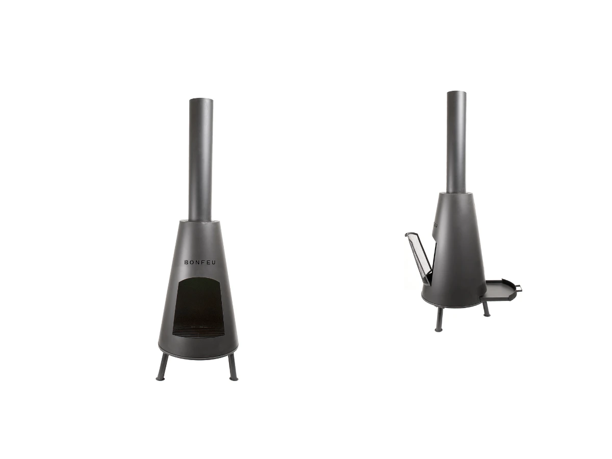 Die BonPyra-Feuerstelle für den Außenbereich ist aus schönem 1-2 mm dickem Stahl gefertigt und mit einer schwarzen hitzebeständigen Lackierung versehen. Mit seinem eleganten Design und dem hohen Schornsteinrohr verfügt der BonPyra über einen hervorragenden Rauchabzug. Sie werden also nicht so leicht durch lästigen Rauch belästigt.