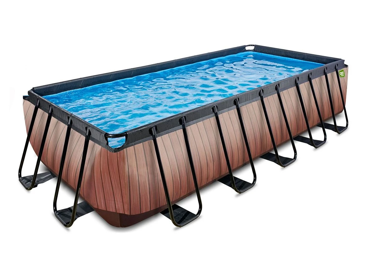 Der EXIT Wood Pool 540 x 250 x 122 cm ist ein rechteckiger Pool. Eine Sandfilterpumpe und eine Pooltreppe sind im Lieferumfang enthalten. Der Rahmenpool bietet genügend Platz, um auf einer Luftmatratze zu schwimmen. Der Rahmen ist pulverbeschichtet, um Rost zu vermeiden. Die robuste Auskleidung ist wunderschön verarbeitet und der einzigartige „Wood“-Look lässt ihn in jeden Garten passen!
