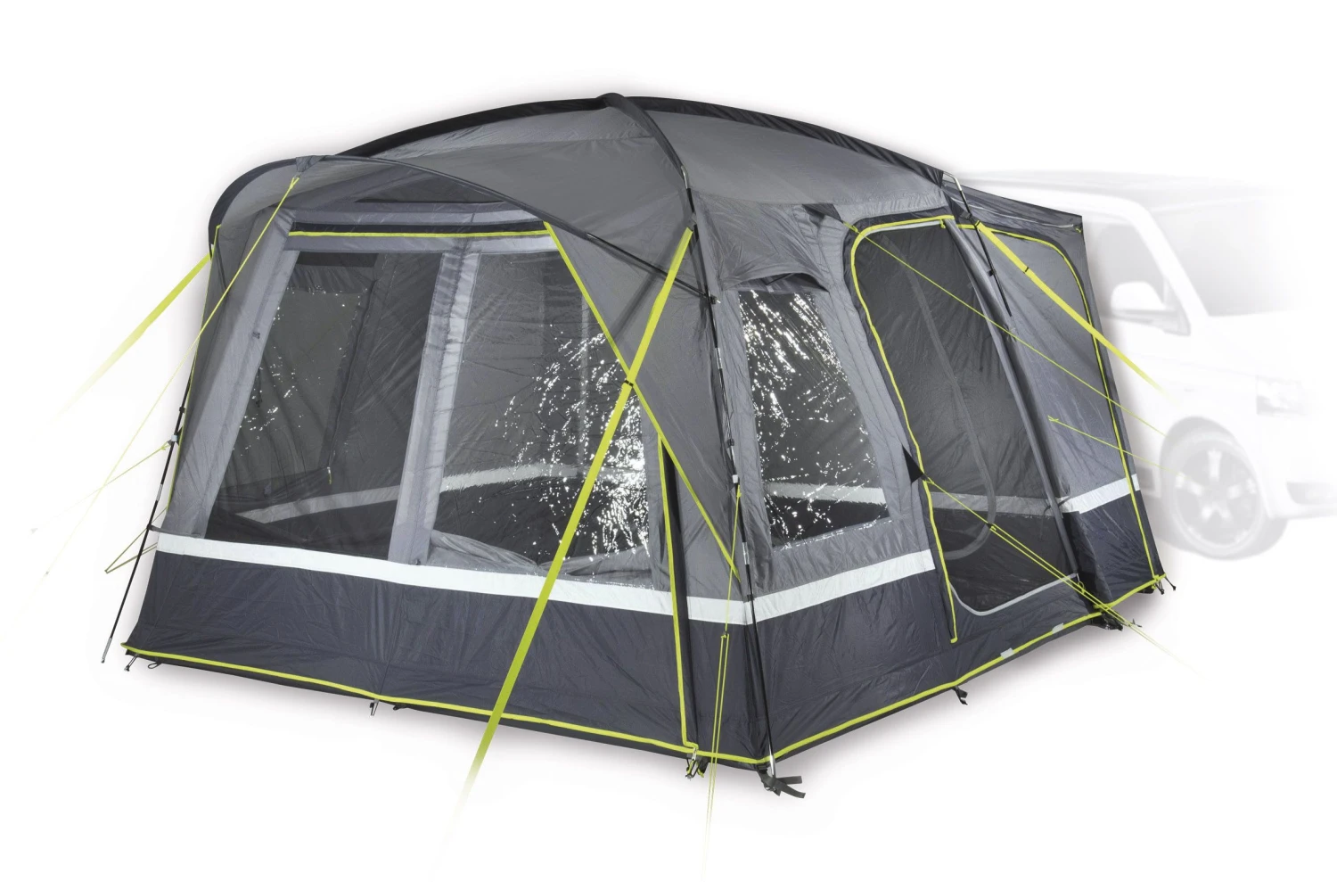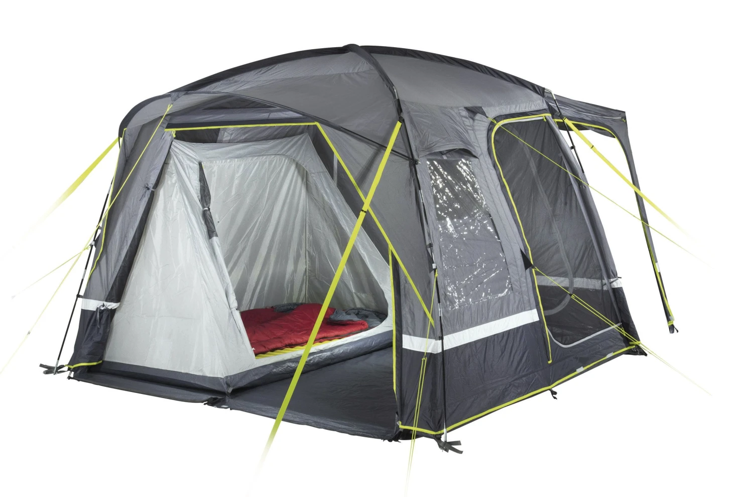 Hochentlüftung und 2 Dauerventilationen belüften das Zelt an regnerischen Tagen. Verschließbare, 50/50 teilbare Rückwand. Die gesamte Rückwand passt in die Easy Stow Away Tasche und es entfällt das lästige Aufrollen.