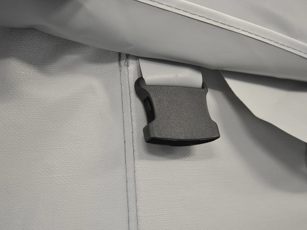 Das Hypercamp Sorrento 240 ist ein kompaktes Ganzjahresvorzellt. Damit eignet sich das Sorrento 240 hervorragend als Saisonzelt oder als ganzjährig nutzbares Vorzelt. Das Dach und die Wände bestehen aus robustem und langlebigem PVC. Das Material hat den großen Vorteil, dass es eine lange Lebensdauer hat und leicht zu reinigen ist. Alle Fenster sind mit PVC-Abdeckklappen ausgestattet. Diese sorgen nicht nur für zusätzliche Privatsphäre, sondern schützen auch die Fensterfolie, damit die Fenster länger schön bleiben.
