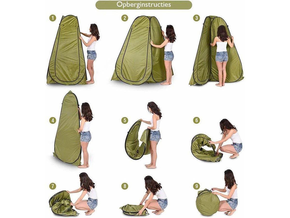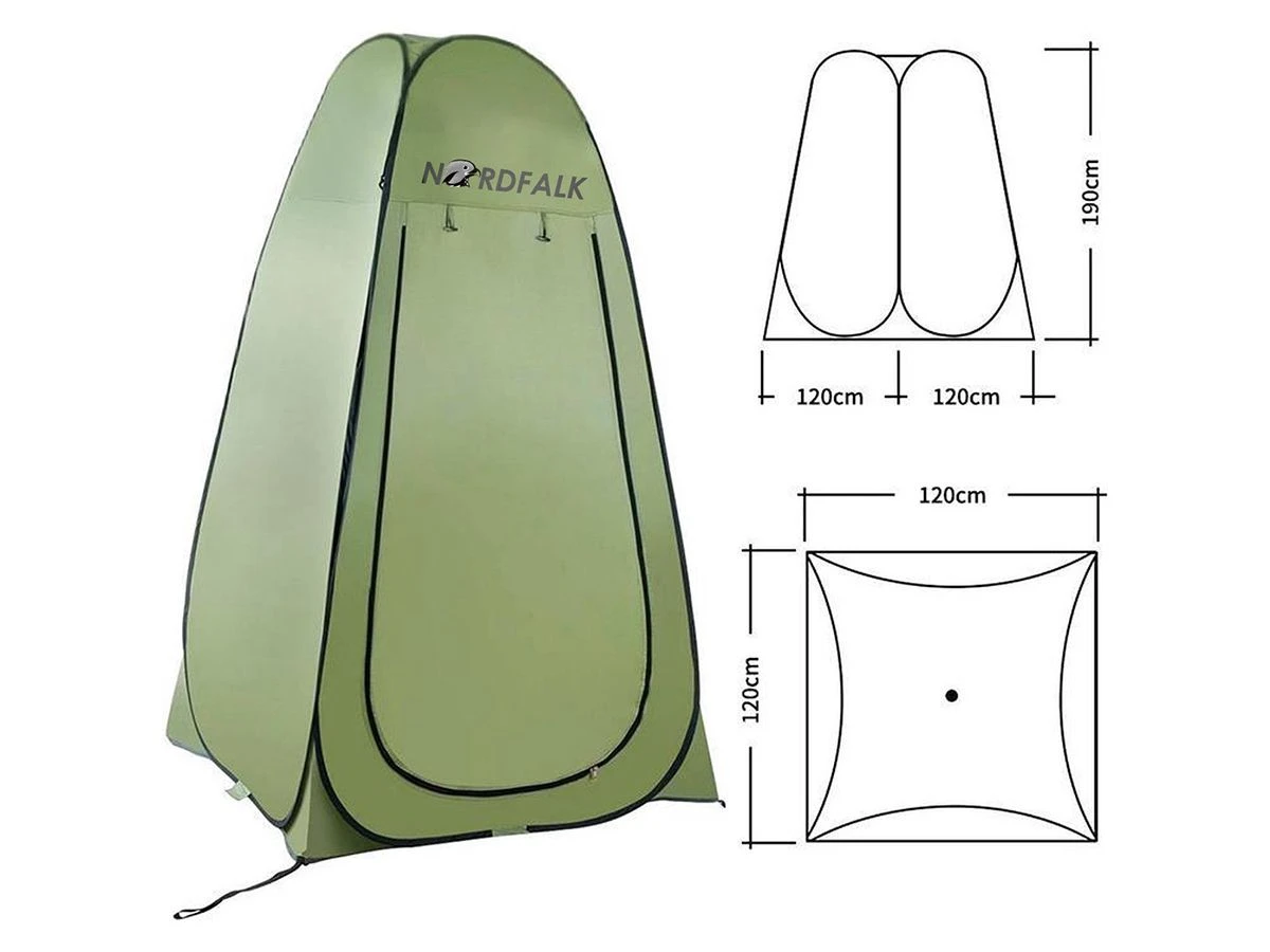 Das Zelt ist aus robustem Nylon gefertigt, das Regen und Wind standhält. Außerdem sind Heringe im Lieferumfang enthalten, mit denen Sie das Zelt für mehr Stabilität zusätzlich sichern können. Das Duschzelt ist nicht einsehbar, um die Privatsphäre zu gewährleisten, aber es ist lichtdurchlässig, so dass das Innere gut sichtbar ist.