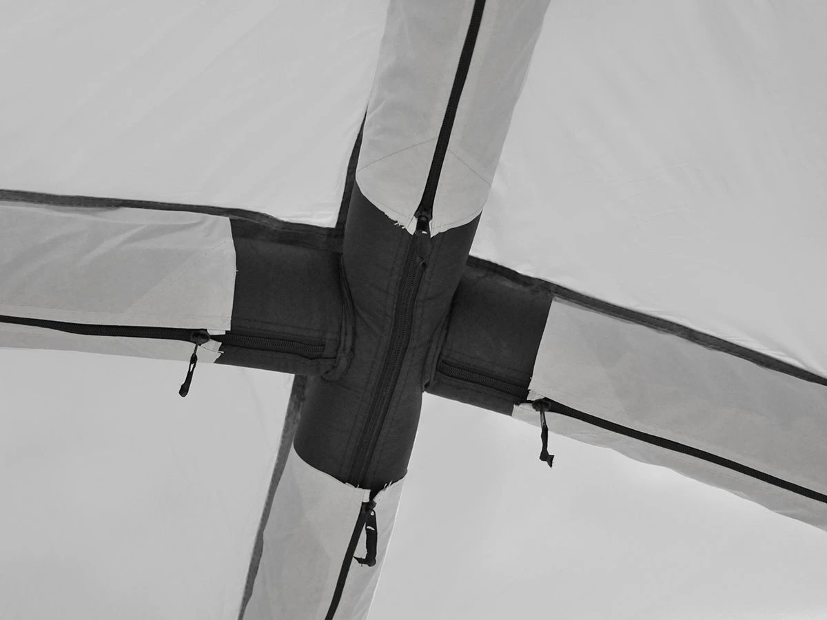 Mit den optionalen Seitenwänden können Sie das Air Shelter 250 auch in ein geschlossenes Zelt verwandeln. Dies ist besonders praktisch, wenn Sie sich zusätzlichen Schutz oder mehr Privatsphäre wünschen.