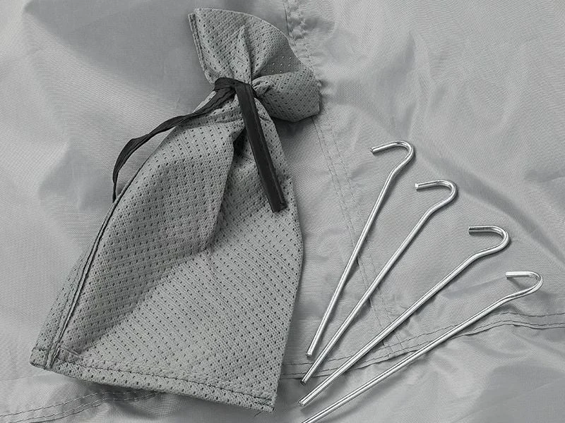 Der Aufbau dieses Lager-Anbauzeltes ist sehr einfach: Sie ziehen den Keder, der sich an der Oberseite des Zeltmaterials befindet, durch die dafür gedachte Schiene an der Rückseite des Wohnwagens. Dann nur noch die Gummibänder an den vier Ecken befestigen und schon steht das Wohnwagen Lagerzelt bereit, Ihre wertvolle Campingausrüstung zu schützen!