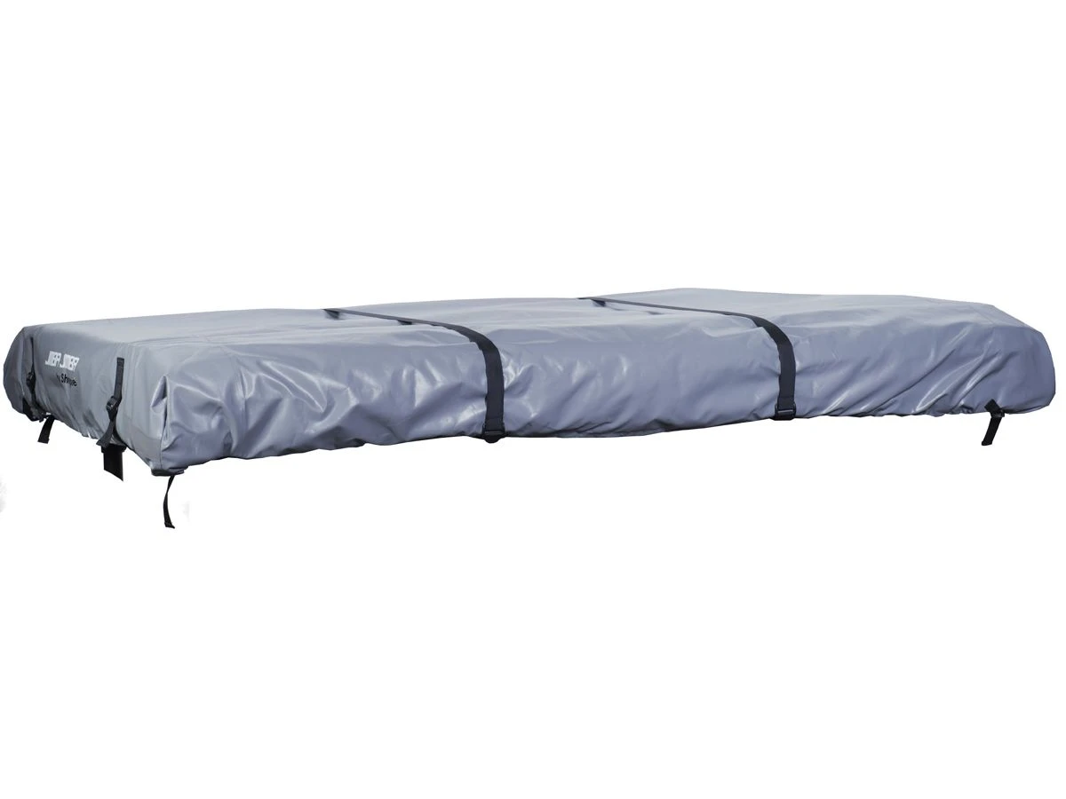 Dank der leichten Konstruktion kann das Jimba Jimba Large auf nahezu jedem Auto mit Dachträgern montiert werden. Mit den mitgelieferten Halterungen kann das Zelt ganz einfach wie eine Dachbox montiert werden. Das Jimba Jimba ist mit einem wasserdichten Bezug ausgestattet, sodass das Zelt und die integrierte Matratze bei schlechtem Wetter trocken bleiben. Dank der integrierten Gasdruckfedern lässt sich das Jimba Jimba einfach ein- und ausklappen. Die mitgelieferte Teleskopleiter sorgt dafür, dass Sie problemlos in das Zelt gelangen.