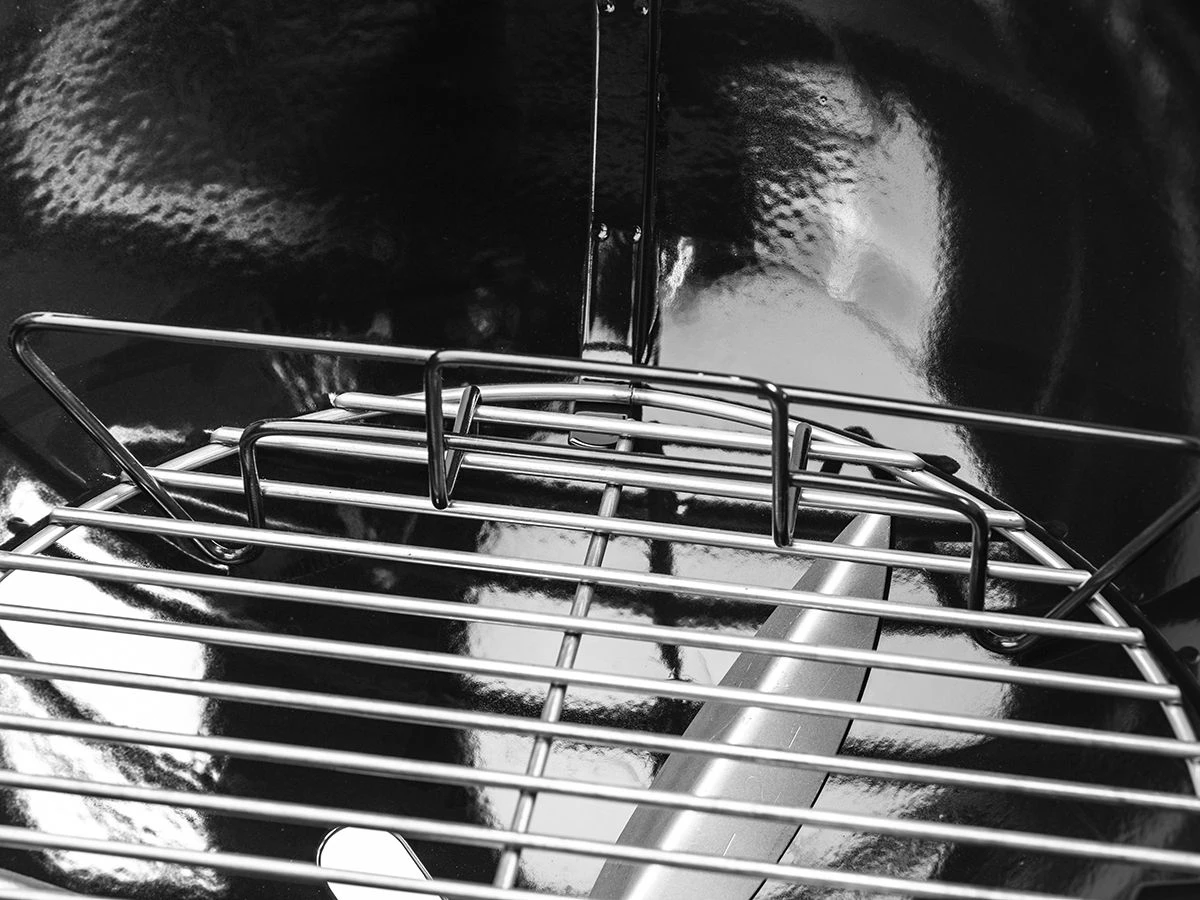 In dem Deckel des Grills ist ein Thermometer integriert und ist bei vielen verschiedenen Gerichten wichtig. Dieser Holzkohlegrill ist 57 x 60 x 97 groß und ist ausgestattet mit zwei praktischen Grillrost. Hiermit können Sie einfach indirekt grillen. Der Grillrost besteht aus qualitativ ausgezeichneten verchromten Stahl.